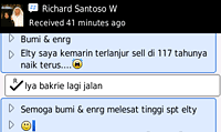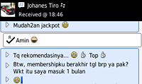 Member Layanan Rekomendasi Saham JurusCUAN.com ada yang menggunakan BBM (Blackberry Messenger). Berikut ini adalah beberapa testimonial member yang dikirimkan via BBM. Ini hanya sebagian dari testimonial dari member yang sudah merasakan profit. Tidak semua bisa ditampilkan karena keterbatasan tempat dan bandwith.