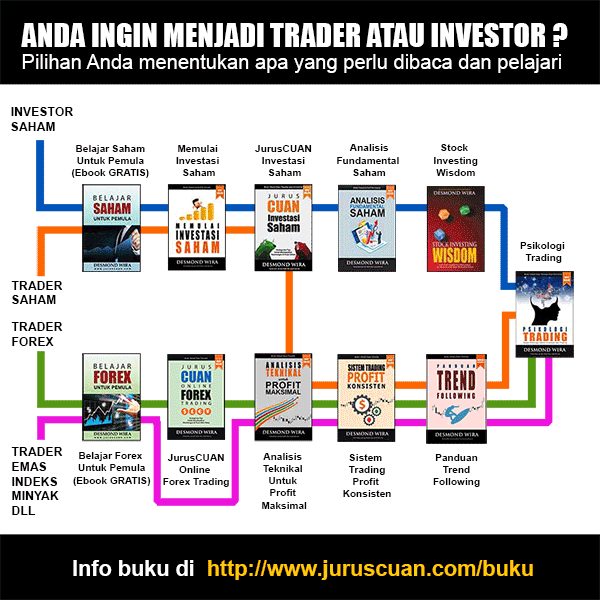 Belajar trading dan investasi dengan benar bukan perkara mudah. Bagi banyak orang, apalagi yang bukan berlatar belakang ekonomi atau keuangan, hal tersebut sedikit menyulitkan untuk belajar trading dan investasi dengan cepat. Untuk itu kami merekomendasikan beberapa buku yang bisa membantu Anda mempelajari ilmu trading dan investasi. Buku-buku ini ditulis oleh Desmond Wira, seorang investor, trader dan juga penulis buku laris.